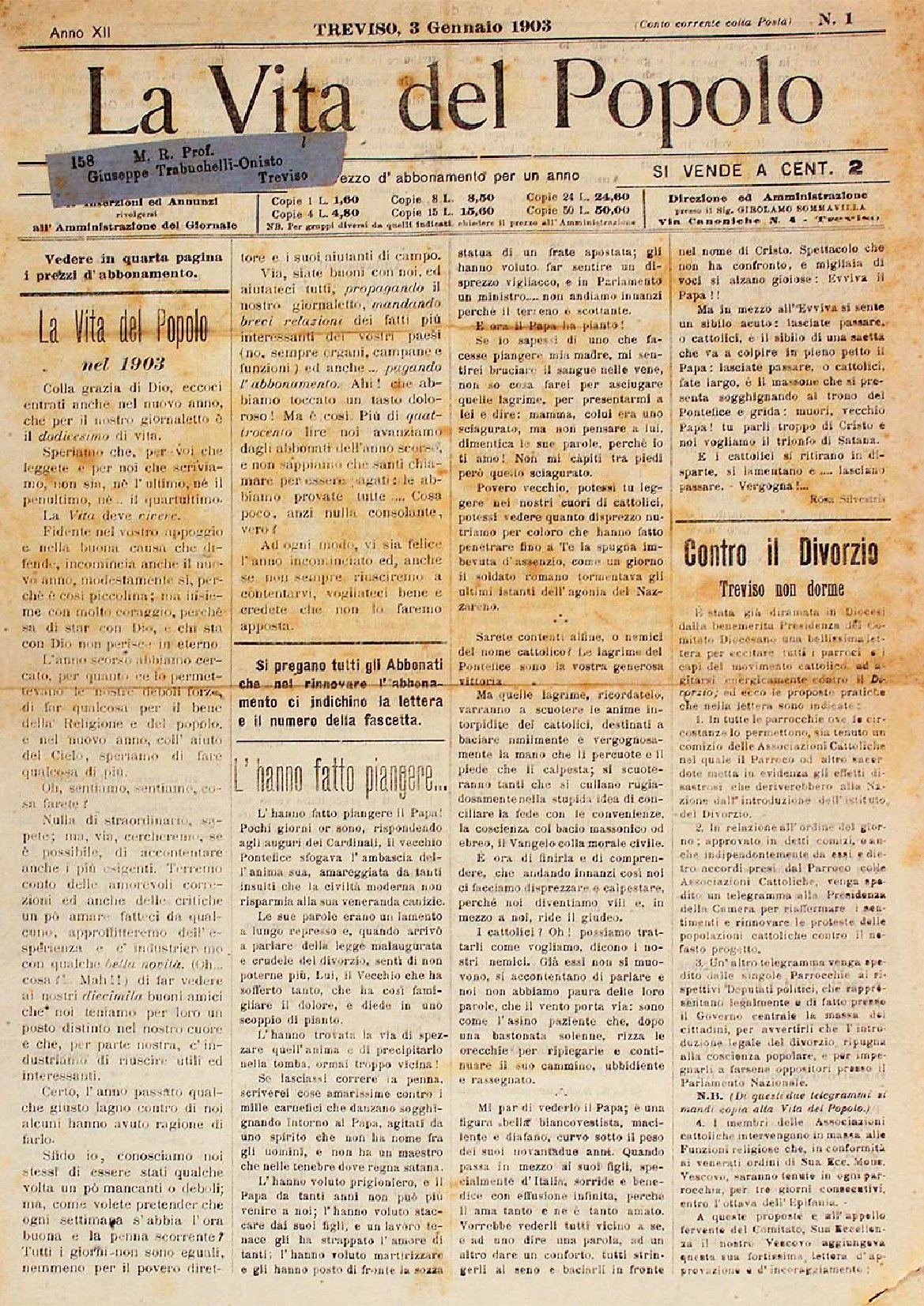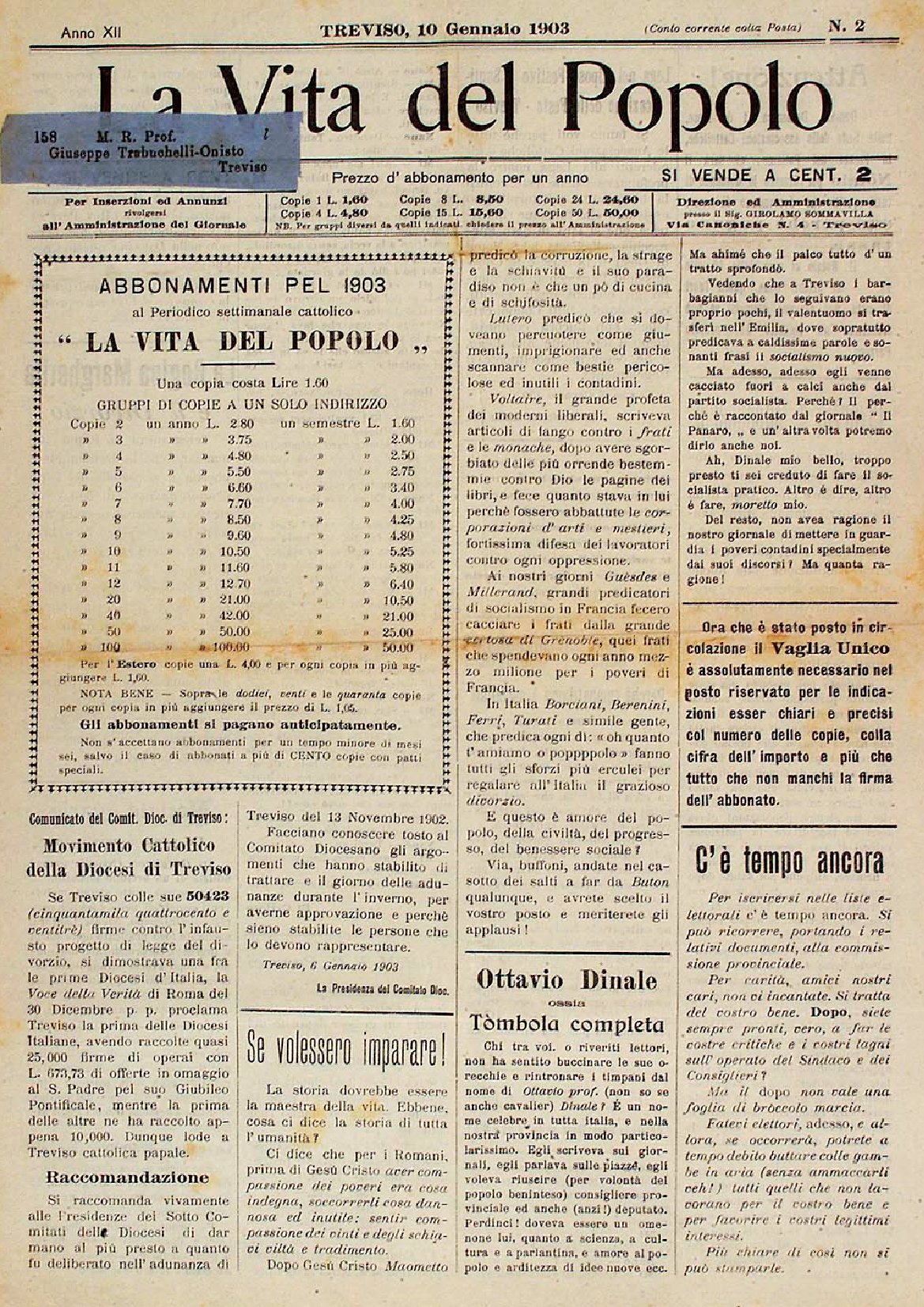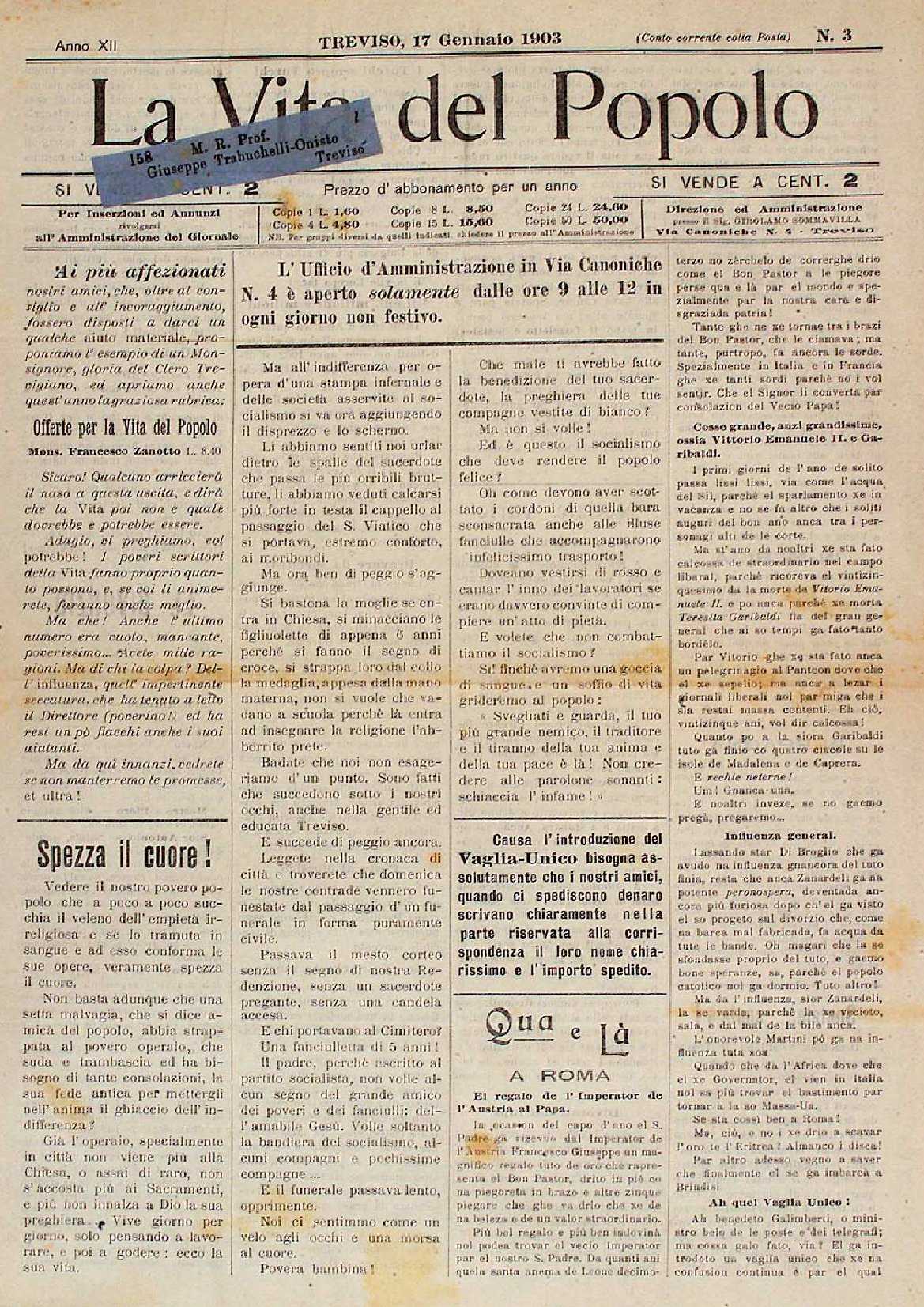 La Vita del Popolo n. 8 del 21.2.1903